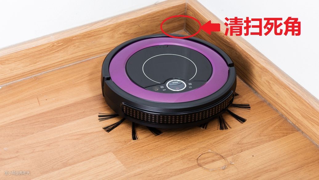 缺点:扫地机器人受自身形状、结构的制约,往往对墙角、柜角和存在高差的门槛缝隙等不能完全清洁,存在清洁死角。并且,人体或宠物的毛发以及黏着于地面的污渍,往往是扫地机器人的顽敌。