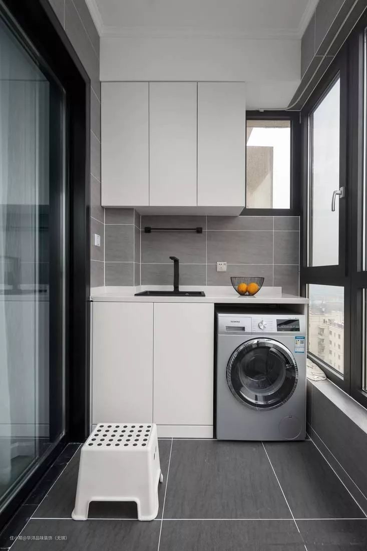 其实安装一个洗衣机的柜子还是很有必要的。如果你家的阳台太小,你也可以装在卫生间或者是洗手间。只需要统一一下风格,保持美观就可以了。有很多的业主没有装洗衣柜。所以导致后来很多人都后悔了,洗衣机都荒废了。