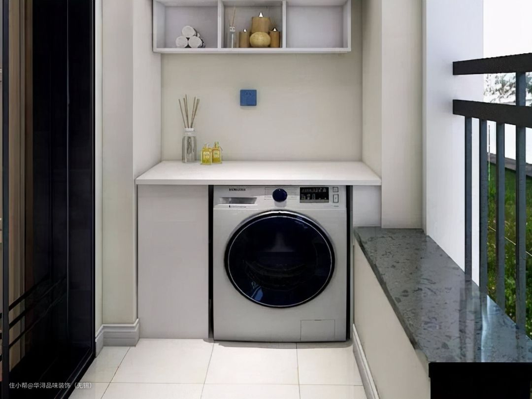 比如说不能够让她接受曝晒,如果阳光太大的话,可能会把洗衣机弄坏。所以它需要有东西来遮挡,而洗衣机柜就是充当的这样一个作用。如果你将洗衣机放在阳台的话,那么阳台防水一定要做好,因为洗衣机很可能会让阳台变得非常的湿润。时间久了,还会造成一定程度上的安全隐患。
