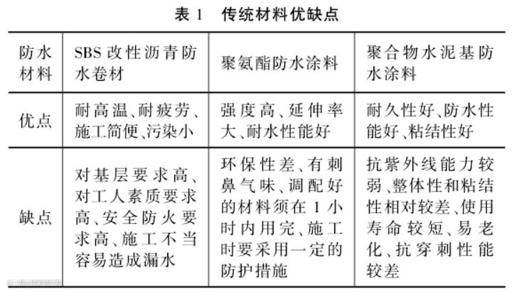 目前防潮防霉的方法,使用最多的是传统防水材料,市面上采用的防潮材料有防水卷材和防水涂料,在耐水性、温度变化的稳定性、机械强度、延展性、抗断裂性等方面具有不同性能。其优缺点主要如下表所示:
