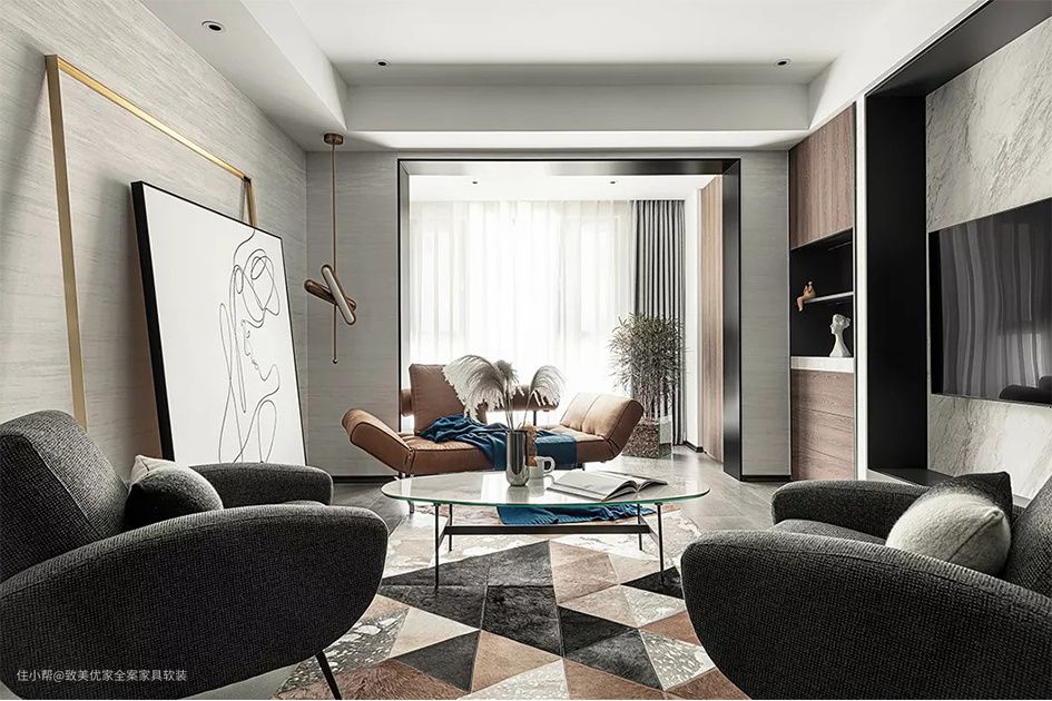 软装搭配技巧一定是要恰当的挑选定位点才可以摆脱全局性的简单感寻找点、线与面中间的均衡,构建出层级融洽的艺术美。