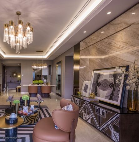 所谓的“见光不见灯”,同时也称为反射照明,灯具隐藏在装修内,通过墙壁、镜面或是地板反射,营造出柔和的照明效果。若因预算限制无法装饰坎灯,也可使用间接照明达到效果。