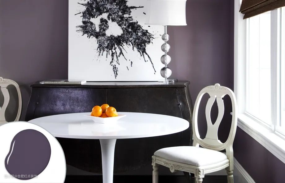 蓝紫色底色赋予这款天鹅绒般的李子活泼的丰富性。当这种深色调搭配浅色家具和乌木木地板时,如图所示,它甚至可以将休闲空间变成更宏伟、更私密的空间。