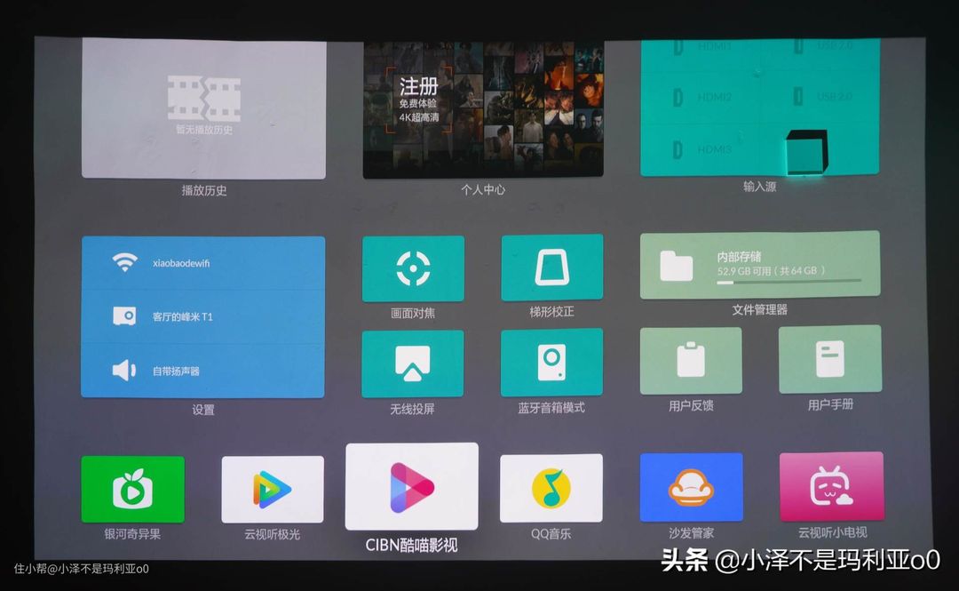 峰米T1的开机时间大约20秒左右,流畅干净,没有广告。