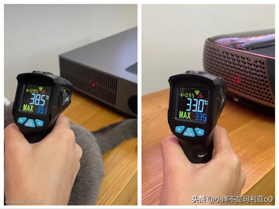 在连续播放1个小时后,两台机器的温度也都能控制在40℃以内,峰米会稍高一些。