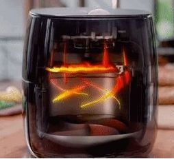 是利用空气替代原本煎锅里的热油,用近似太阳热风的对流加热,使大功率风扇运行在密闭的锅内形成急速循环的热流,以至于食物变熟,同时热空气还吹走了食物表层的水分,令食材无需滚油也能达到近似油炸的效果。