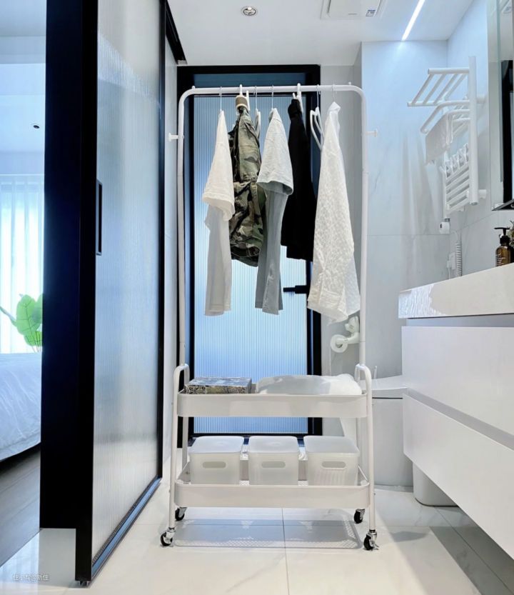 这时候,不妨给家里增添个如图的隔夜衣收纳架,卧室、卫生间、玄关均可放置,就能解决家里到处的衣服山的问题。