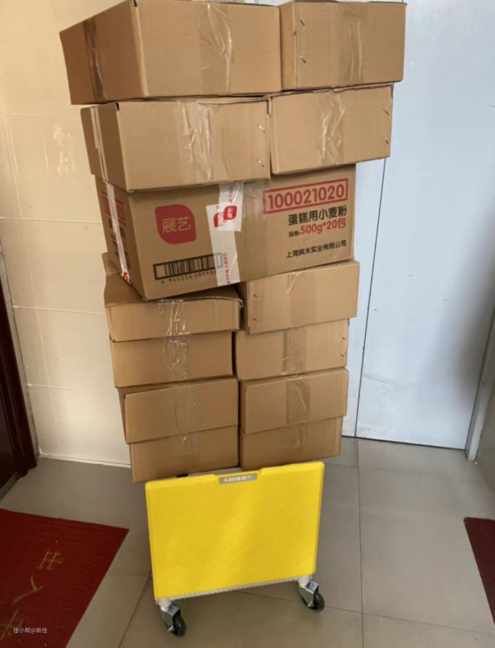首先是取快递,大小箱子,可以直接摞在上面,拉上楼很轻松。