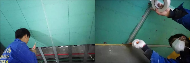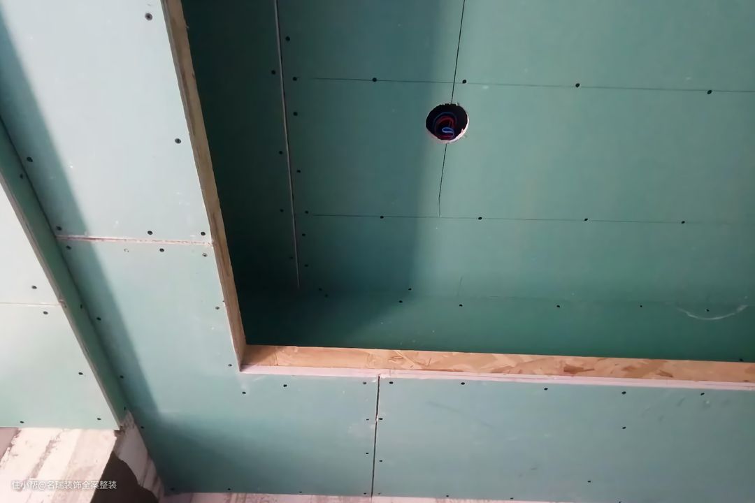 当遇到两块石膏板要垂直组合,接缝处要记得做:错缝处理。可有效防止开裂,效果杠杠滴~