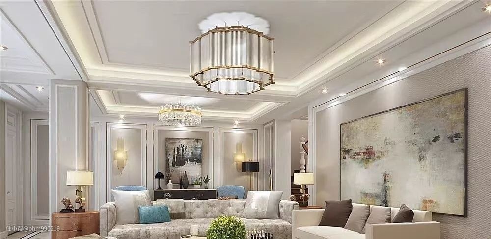 随着轻奢风的流行,越来越多的家庭,在装修上会将它与其他风格结合在一起,最常见的是轻奢+美式、轻奢+现代、轻奢+新中式,不同风格与元素相结合,不仅让客厅效果越发丰富,还能将轻奢的精致与质感,给呈现出来,彰显独一无二的美感。