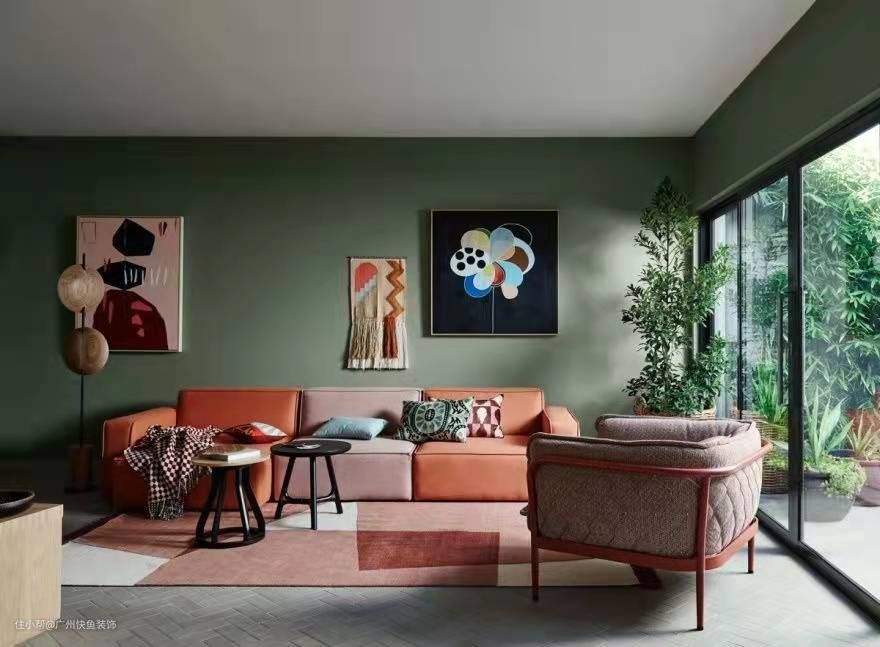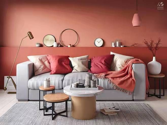 背景色通常指墙面、地面等大面积的界面色彩。背景色空间占比大,影响着整个空间的色彩效果。想打造自然、舒适的氛围,可以选择低饱和度的色彩。想打造热烈、喜庆的氛围,就要选择饱和度高的色彩。
