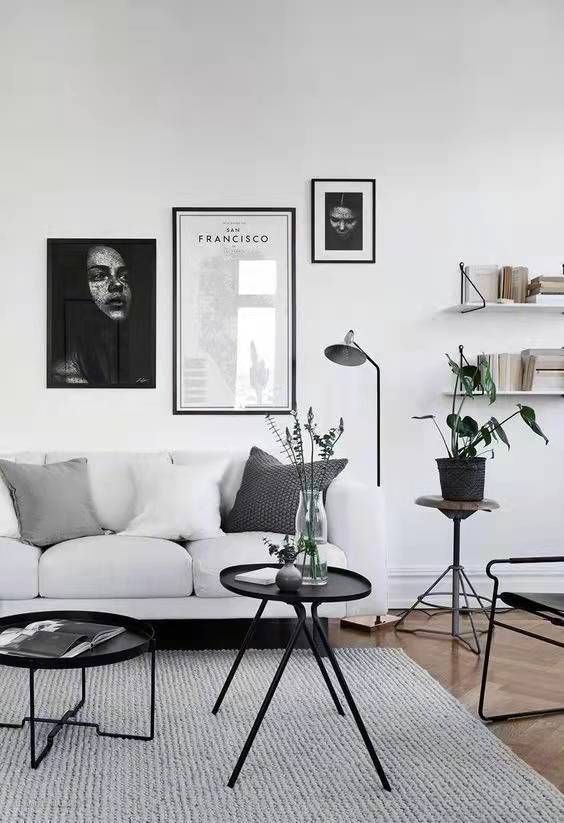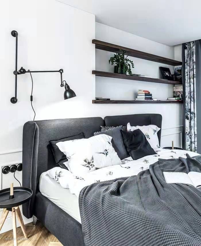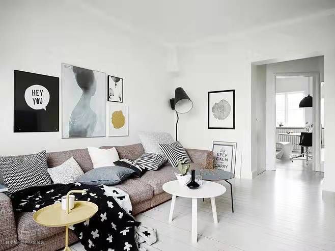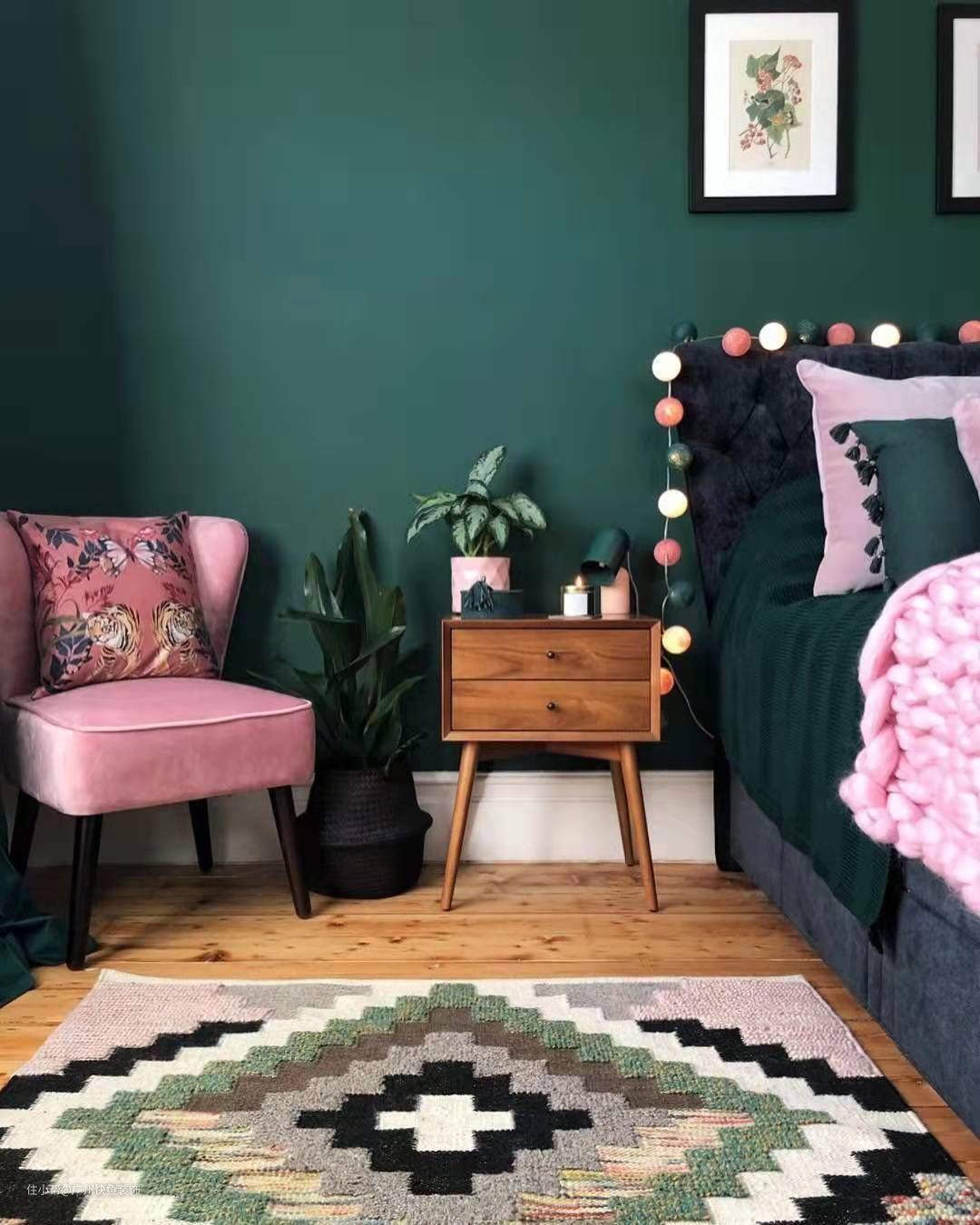 点缀色是指空间中易于变化的小面积色彩,比如抱枕、摆件、挂饰、灯具等,通常都是采用高饱和度的对比色,来打破空间的压抑感,富有表现力。