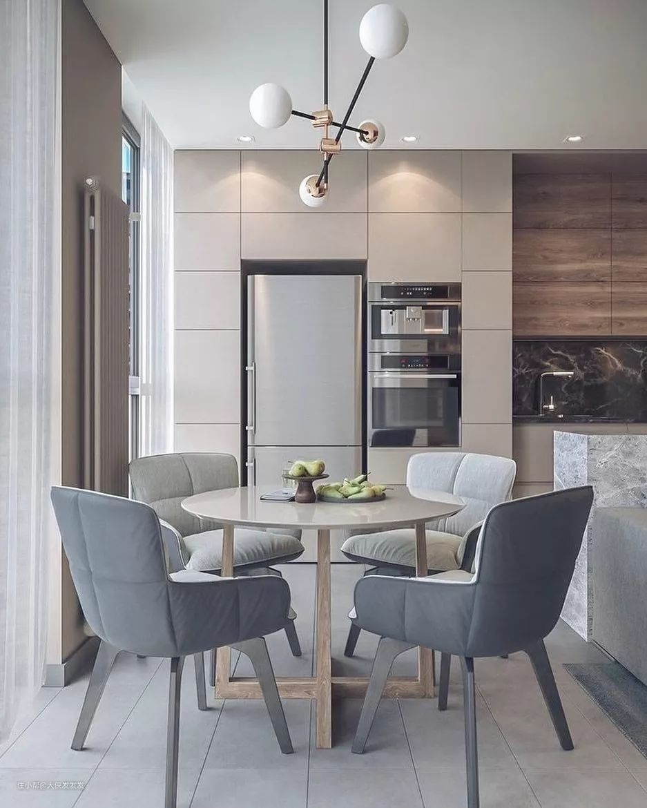 冰箱的色彩最好选择与柜子颜色相近的,或者是黑白灰等常见色系的,利于搭配整体空间。