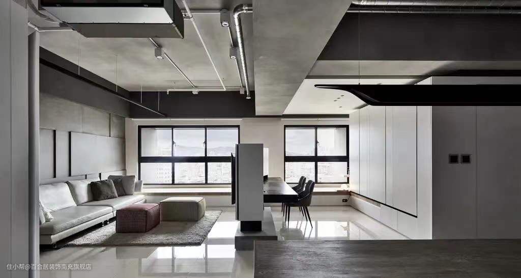 局部吊顶,是适用度最广的一个吊顶方法。房屋的中间不吊顶,对于四周采取局部吊顶的方法,既可以隐藏管线,也不会压缩大空间的层高。灯具、中央空调、风管机、新风系统,都可以隐藏,只是对部分吊顶区域会有所压缩,考虑质量,建议选择轻钢龙骨。