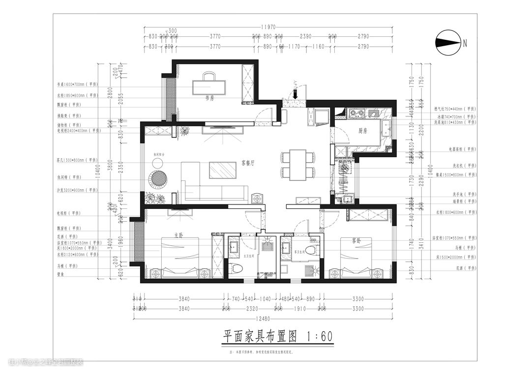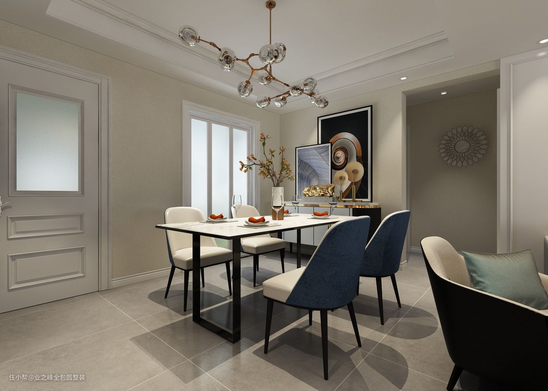 客餐厅以白色为主,适当的深色点缀,提升了空间的层次感。