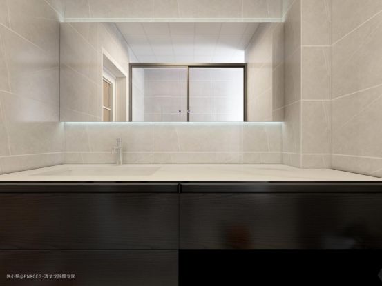 灰色背景与黑色浴室柜的搭配,充满了质感,也是都市未来的时尚。留白的台面,可放置更多的洗护物品,方便拿取。
