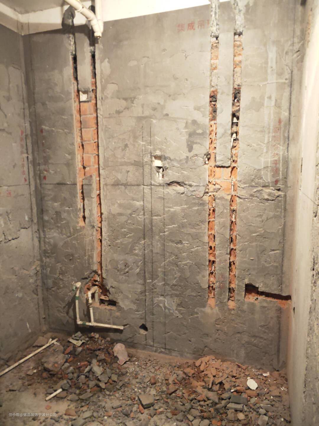 二次装修中管道嵌墙暗埋时,嵌墙暗管墙槽的尺寸深度和宽度要根据墙体来计算。凹槽面必须平整,不得有尖角等突出物,管道试压合格后,墙槽用M7.5水泥砂浆填补密实。如果表面砂浆保护层厚度较小(特别是使用PP-R管时),由于热胀冷缩的原因,会造成墙面开裂。