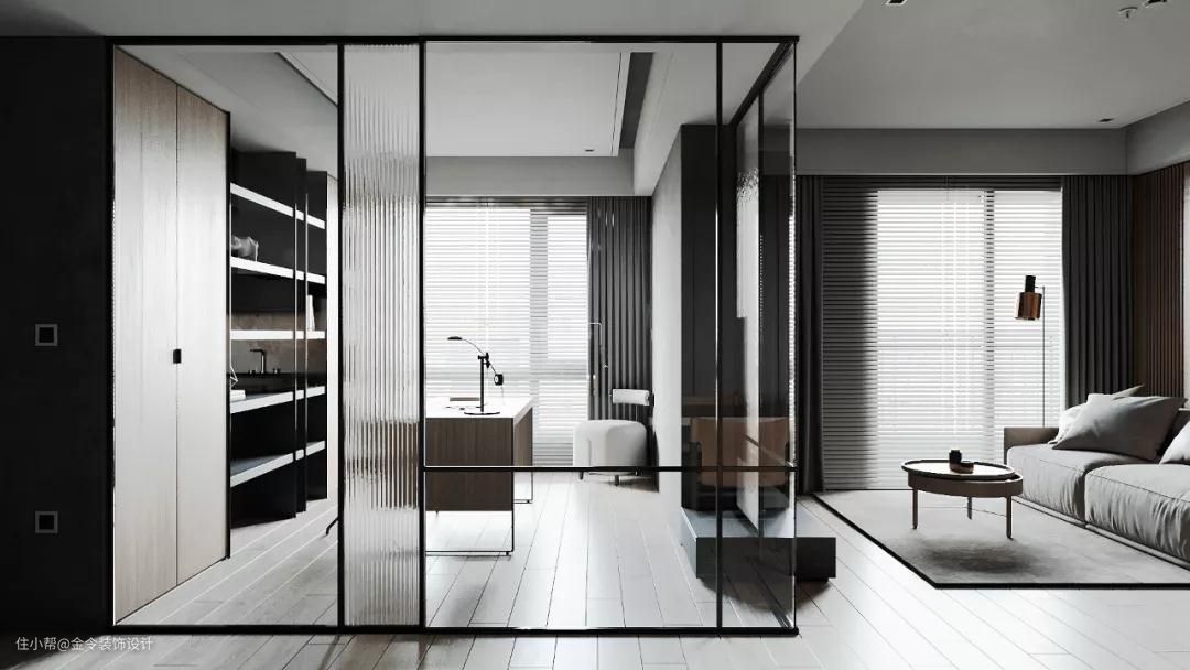 拆除厚重挡光的墙体,用玻璃做墙体,能让空间更通透比普通的墙也更薄。晚上拉上门帘也很好的保证隐私性。