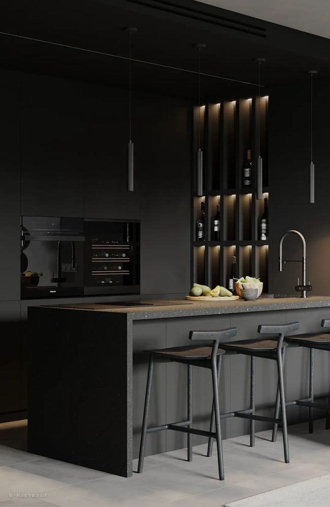 吧台底部空间,不管是内嵌厨房电器还是做储物柜都很合适。