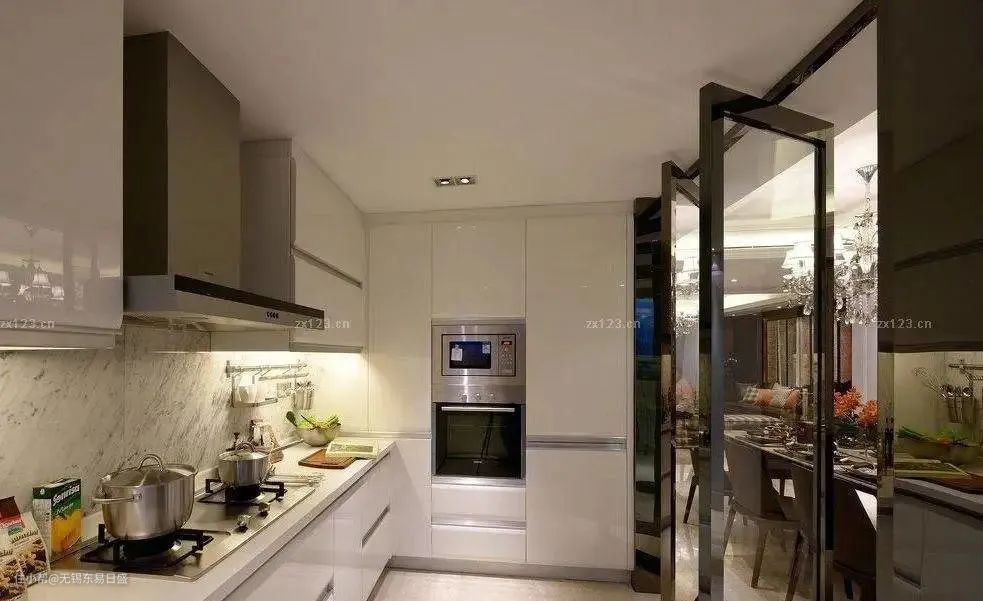 如果觉得有玻璃隔断让厨房设计并不是完全开放式的,大家也可以选择不用玻璃隔断,可以在装修时将厨房内的通风做好。