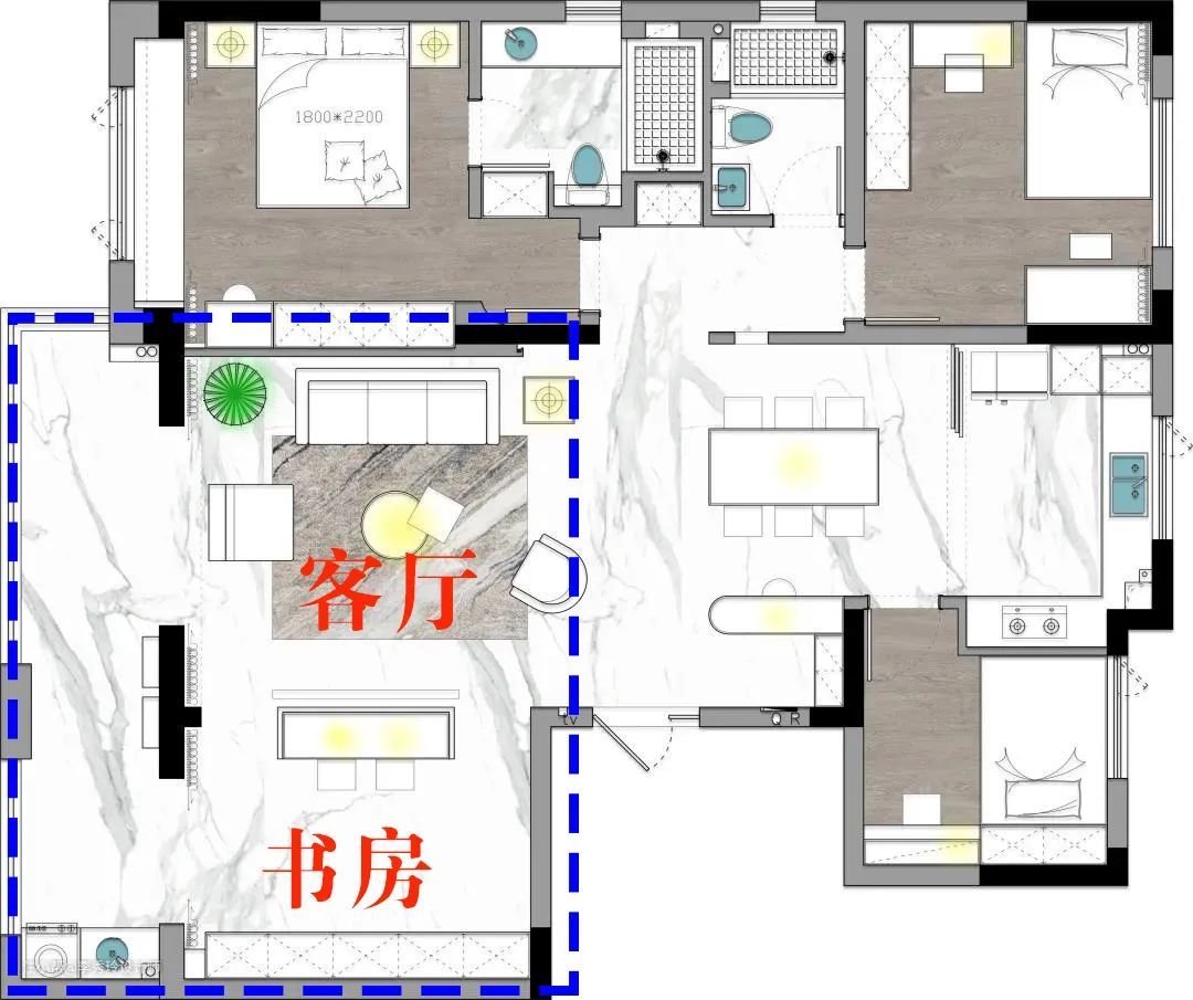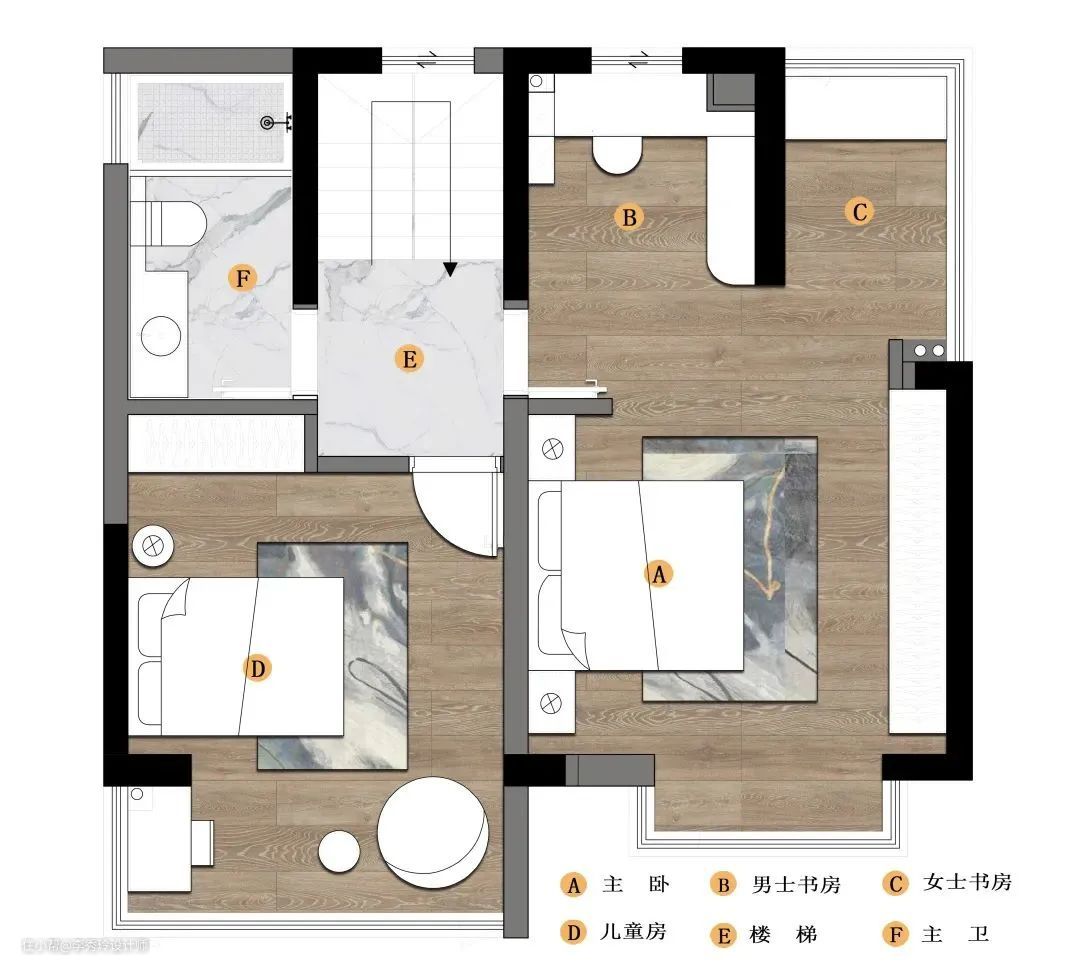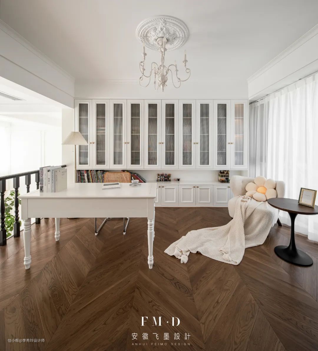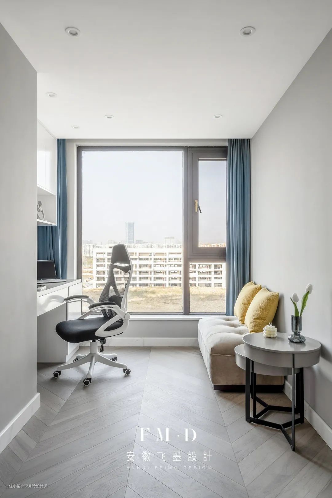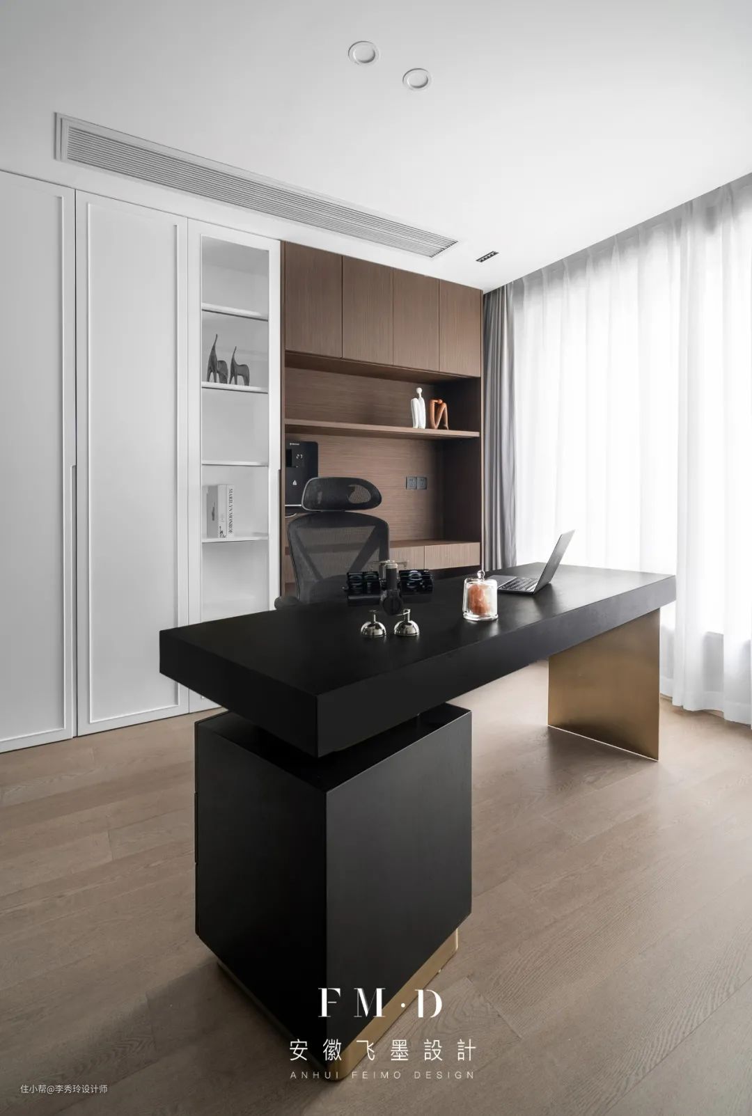 如果条件允许,可以设计双书房,像【平湖秋月】这个项目一样,男女业主都有独立的书房空间,且中间做了隔断处理,既能保持独立的工作状态,又可以随时互动。