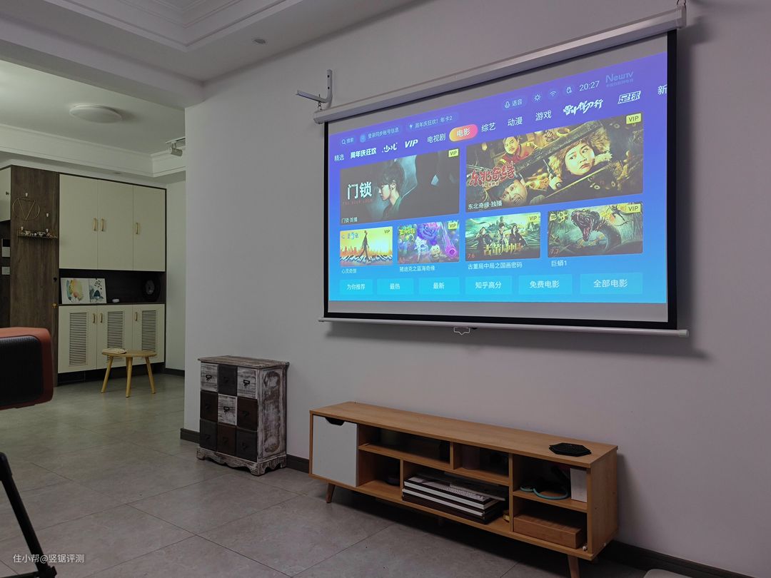 再来看几张慧示J1 Pro在幕布下的投影效果吧。说实话,我个人还是喜欢直接投墙、不受限制,不会像使用幕布这样出现画面比例限制,从而使画面投不满幕布。
