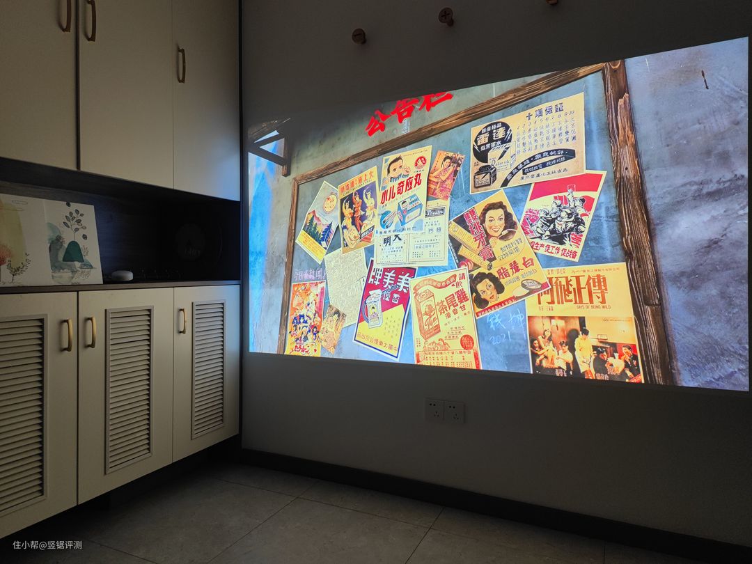 上图是慧示J1 Pro在开启吊灯的同时又多打开了3个筒灯后的投影效果实拍,可以看到慧示J1 Pro的投影表现依然不错。