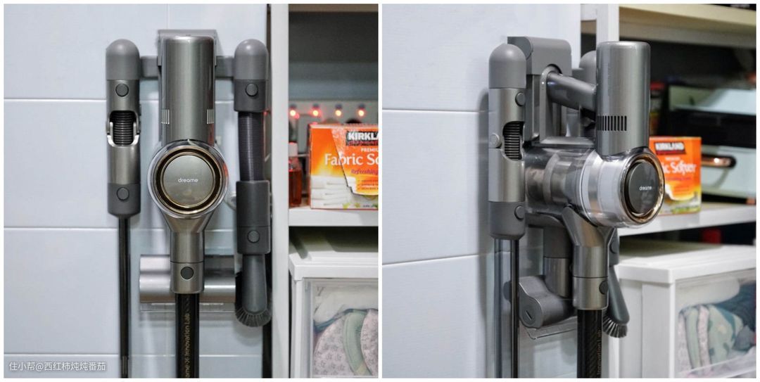另外还有一点,楼主个人比较喜欢追觅的收纳挂架设计。并且因为 V系列的几代产品外观始终一脉相承,所以即便后期升级产品,挂架也依旧可以继续使用 ▲
