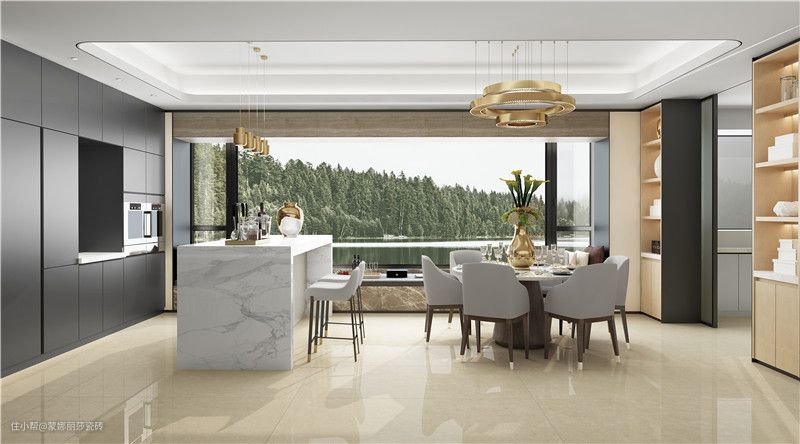 “伊诺米黄”的线条细腻天成,纹路自然灵动,通过微粉布料技术经典重现了天然岩石的自然肌理。如玉的质感,营造出了一种浪漫情调,整体空间都变得明亮起来,不失艺术氛围感。