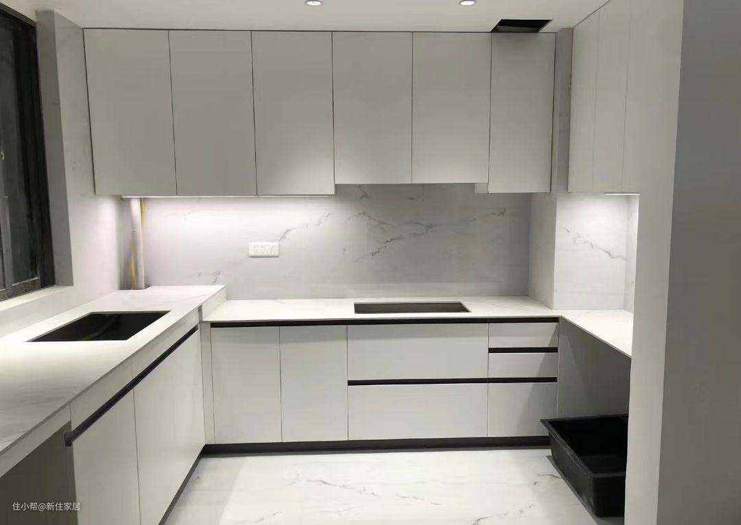 新小住建议:橱柜一定要做通顶的,最好一点缝都不要留,既增加了收纳空间,橱柜颜值方面也更有保证。