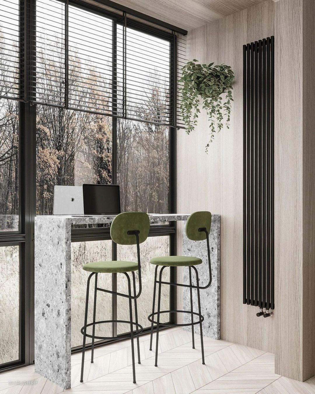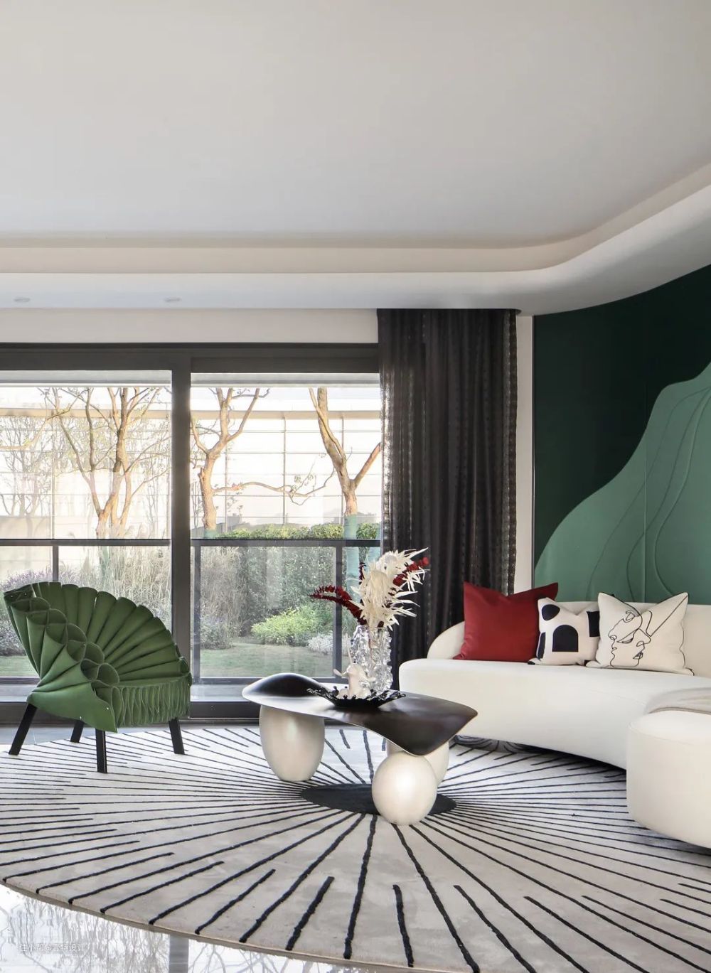 绿色是生命的象征,来源于植物的物质表象,绿色所传达的清爽,理想,希望,生长的意象,绿色一般很少用于室内大面积的铺设,而是用一盆绿植、一件家居饰品来点缀,为室内空间带来自然清新的田园气息。
