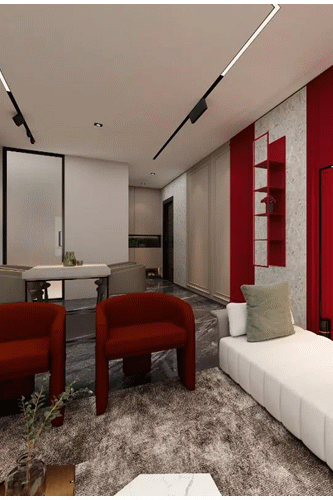 在现代与传统中不断转换,“一抹红韵”贯穿于全屋空间,凸显室内温暖的态度,以及对现在生活的最终平衡,寻求内心深处的一处阳光与希望。