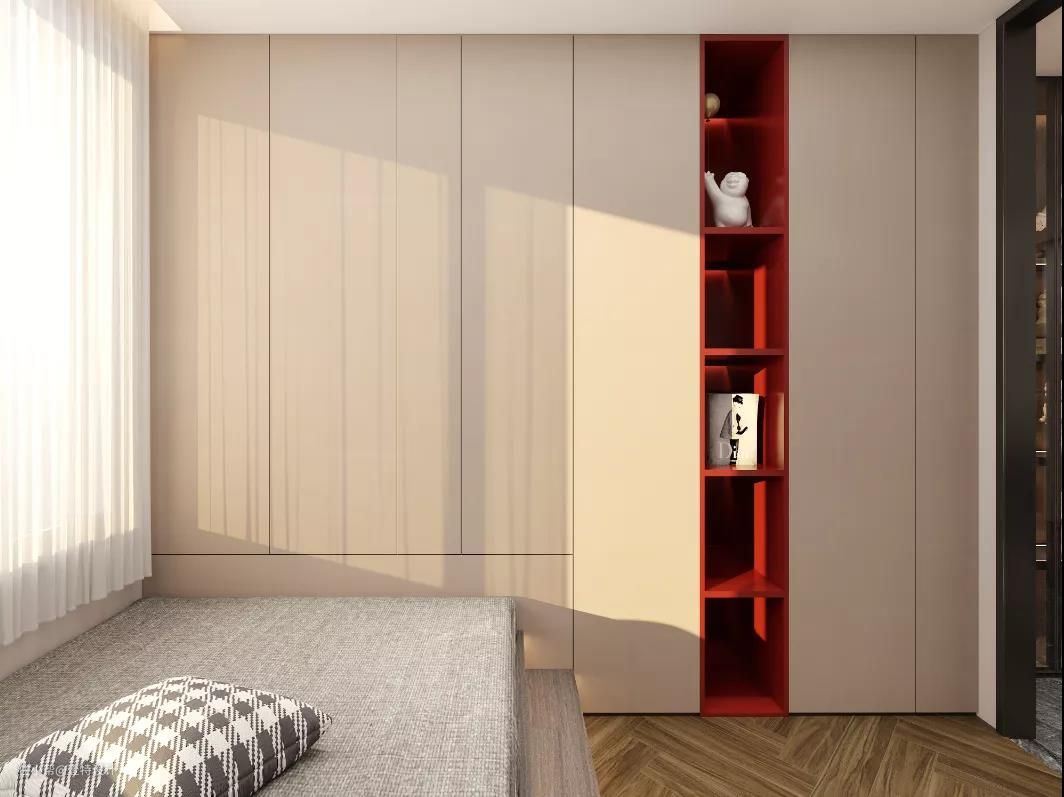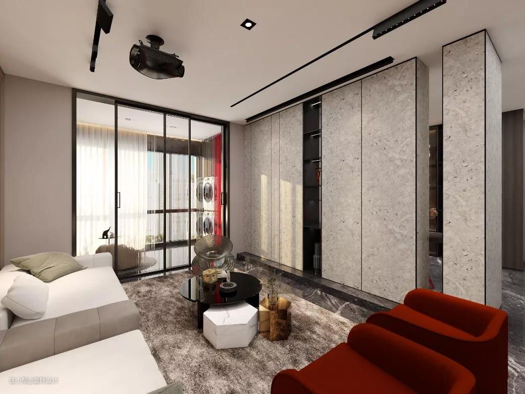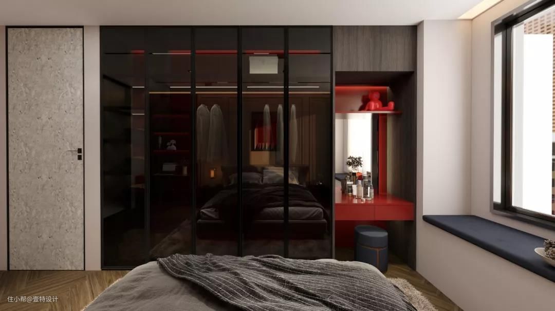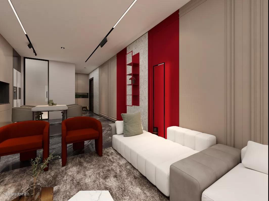 当独具传统特色的中国红搭配当下沉稳流行的奶茶色,加之灯光的烘托,轻松营造出时尚简约、温馨舒适的居住环境。