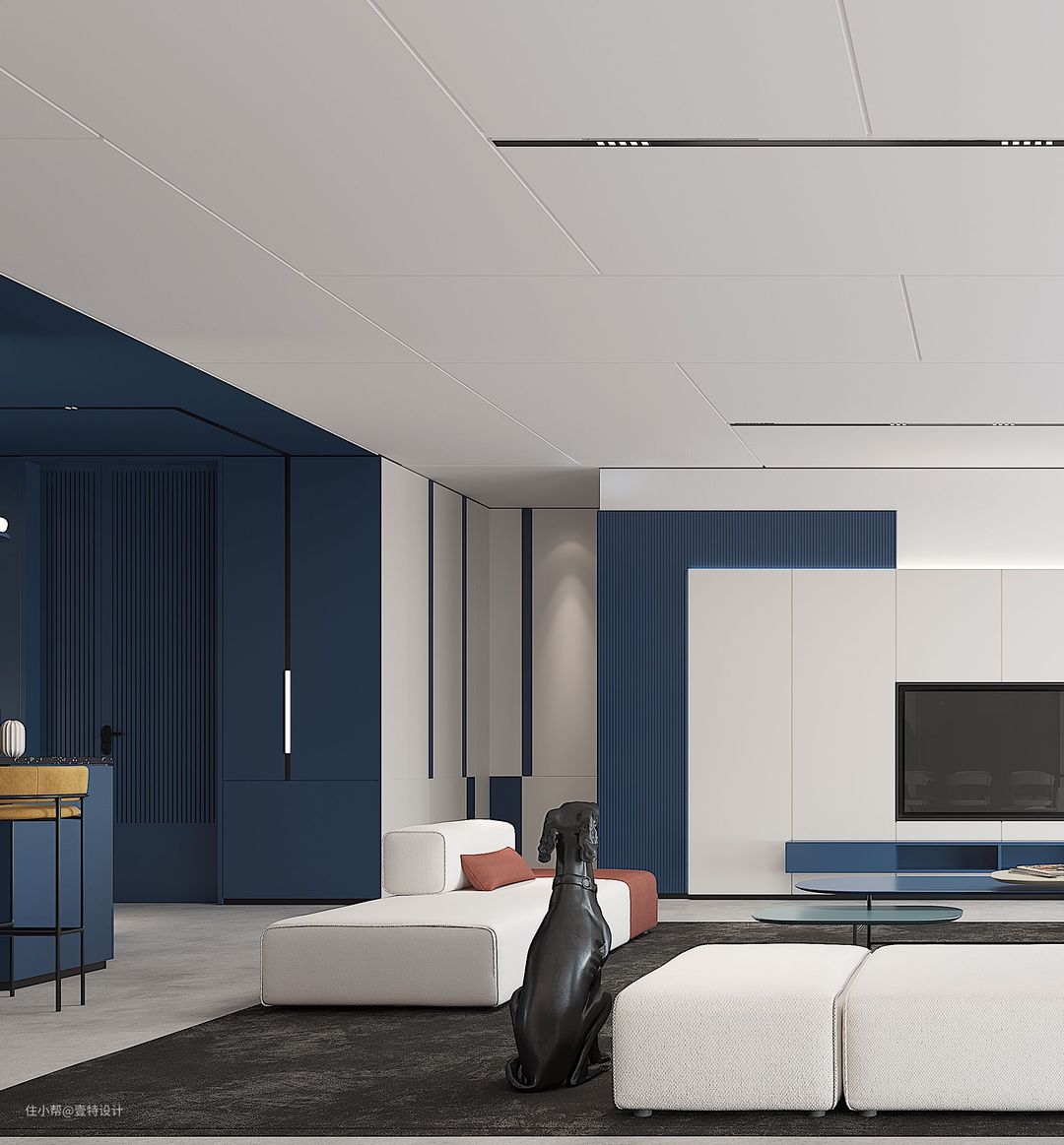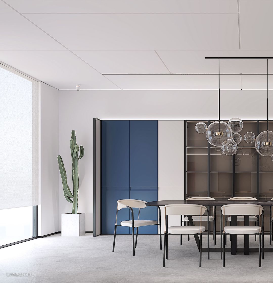 蓝色在家居设计中可以作为主色彩大面积铺陈,奠定夏季家居清爽的基调的同时,选用同色系的蓝调搭配,可以增强家居色彩的层次感,给空间带来了十足的时尚现代感。