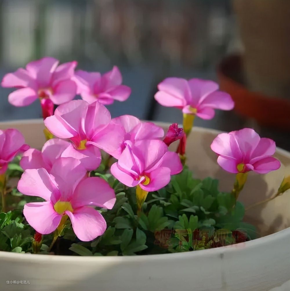 作为草花的红花酢浆草,除了给它及时浇水,以及充足的光照环境外,一定要注意施肥,因为开花需要消耗大量的养分,及时施肥才能补充养分,让它开花一茬接着一茬。