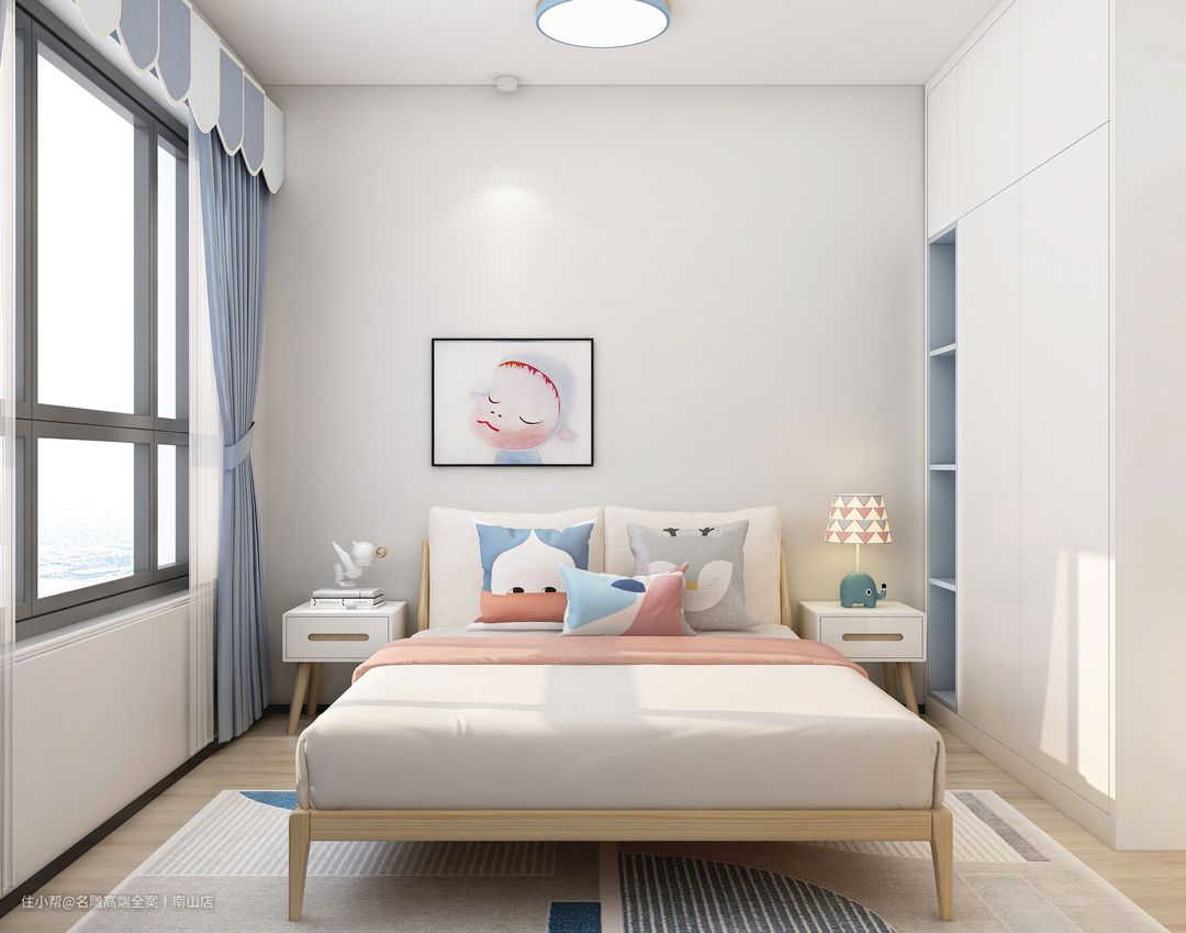 小孩房:儿童房的光线特别好,虽说屋内空间并不大,可是整体观以安逸舒适惬意为核心,极简风格的设计构思包含家私家具上的,也是比较简单的,像卧室床的床头柜设计构思十分巧妙,外观也很别具一格。