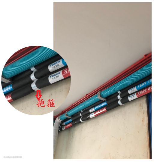 一不:冷媒管与排水管不能共用抱箍进行固定