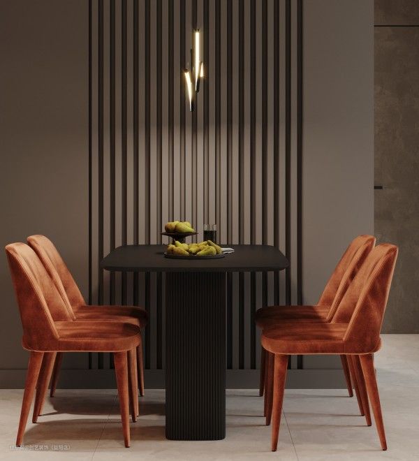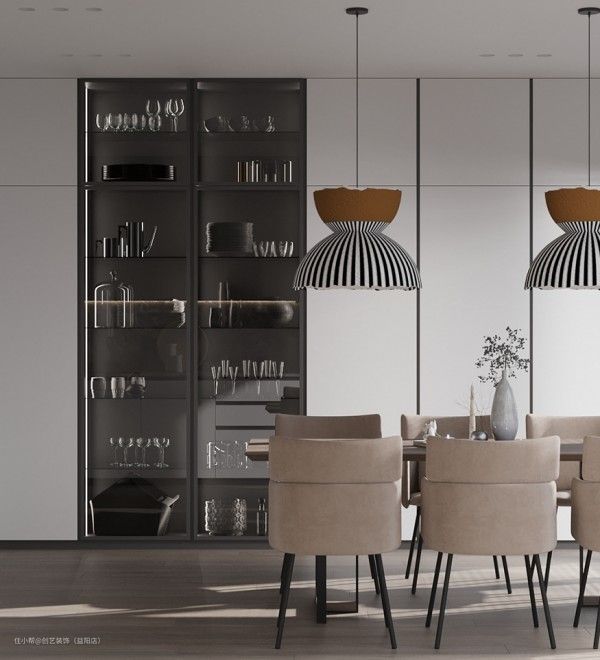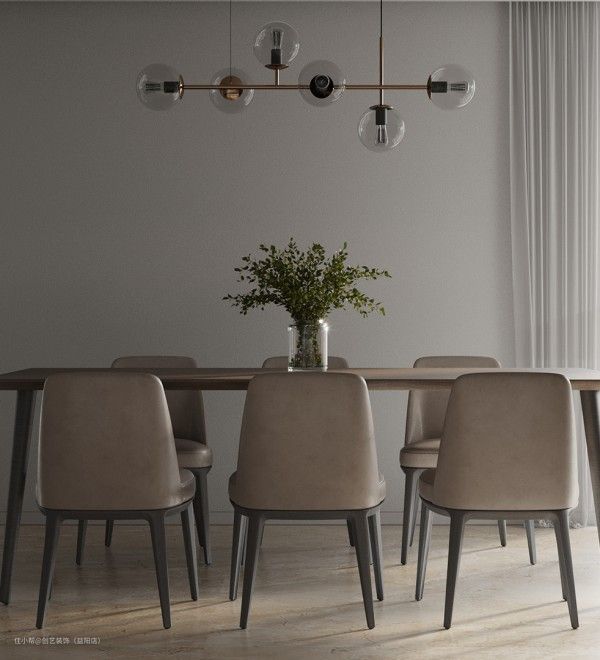 灯具本身就是软装的一部分,满足基本的照明功能之外还可以提升餐厅的整体颜值。