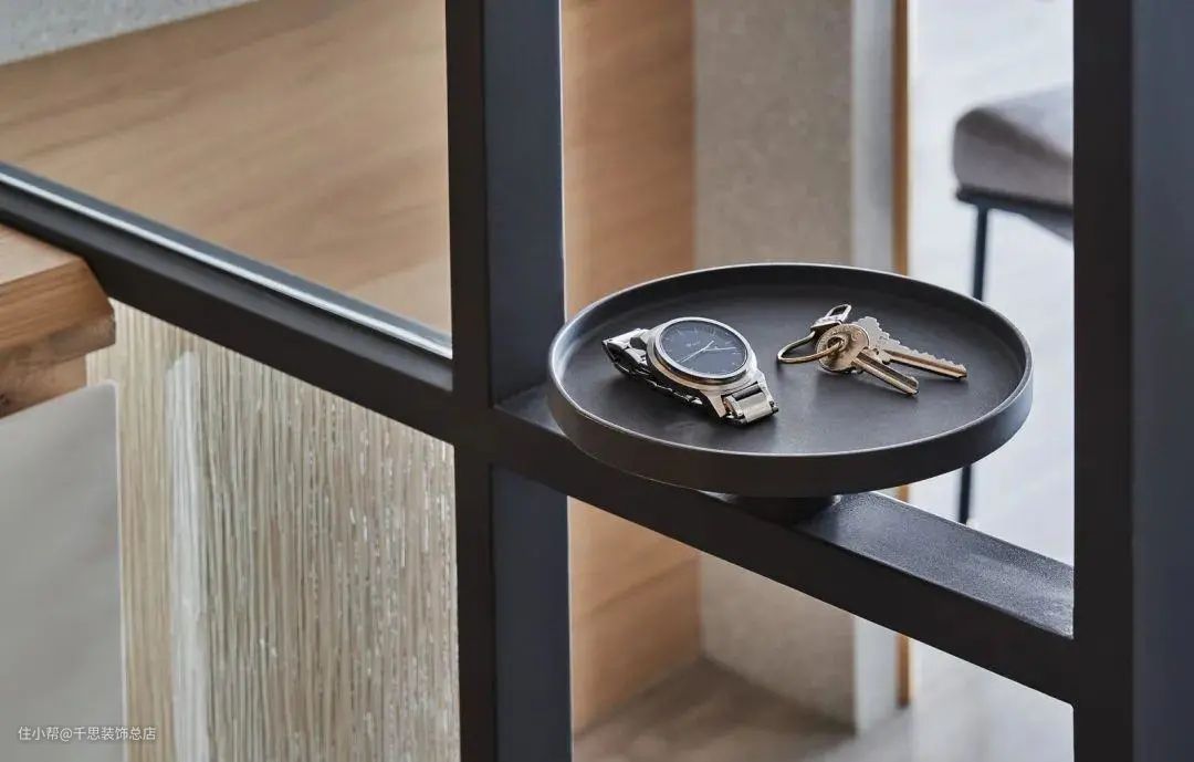 ▲屏风上加入一个小托盘,回家后手表钥匙之类的随手小物件可以顺手放在这个位置。