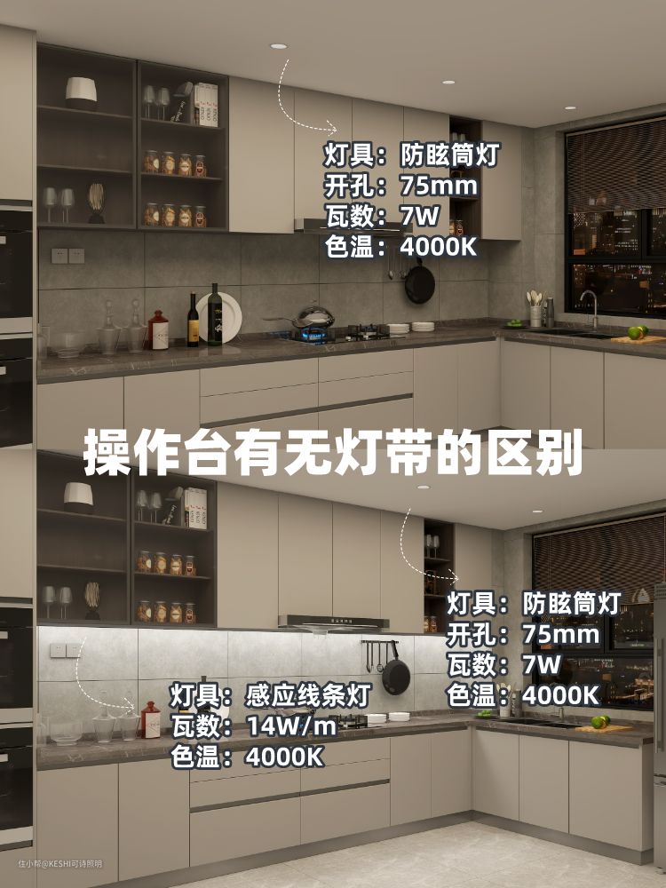 特别在操作台区,增加线条灯不但能提升厨房颜值,还能避免操作暗区,让烹饪变成意见赏心悦目的事情,色温6000K比较明亮,4000K比较柔和,你喜欢哪个?