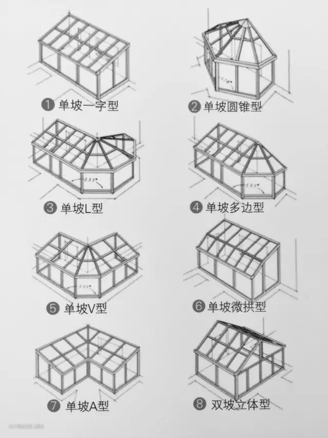 阳光房是由承重结构、四周立面、顶部组成的结构,结构形式多样,可根据需求灵活多变的设计。