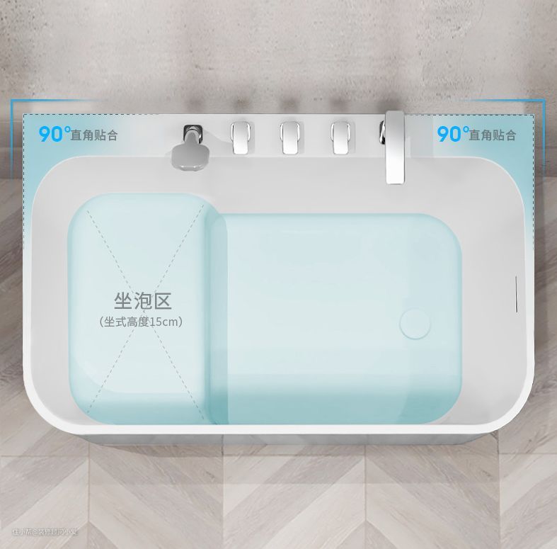 比起圆角无法靠墙,方形坐式浴缸直角靠墙,严丝合缝。