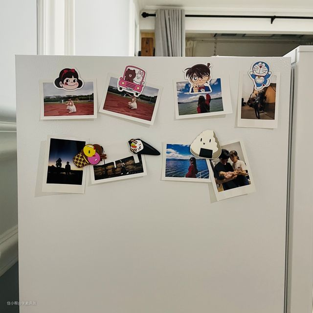 小冰箱的侧面可以做一些开发,可以根据自己的喜好进行装饰,比如说可以买一些好看的冰箱贴,打印一些自己喜欢的照片贴上,既美观又有生活的甜蜜和仪式感,记录生活的点点滴滴。