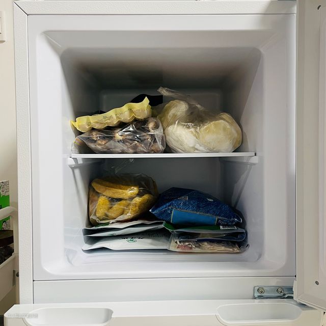 冷冻区域是恒冷的,不需要单独设置温度调节,采用双层分区储存,可以根据自己的实际需求进行分区存储,避免出现海鲜、冷饮混在一起冷冻串味的情况。我一般是上层用来存储老妈投喂的面食:水饺、包子、馒头之类,下层存储一些带包装的食品如牛排、鸡排、烤肠之类的。等到到了夏天还可以整上一层雪糕,岂不是幸福感爆棚,45L的容量被安排的满满当当。