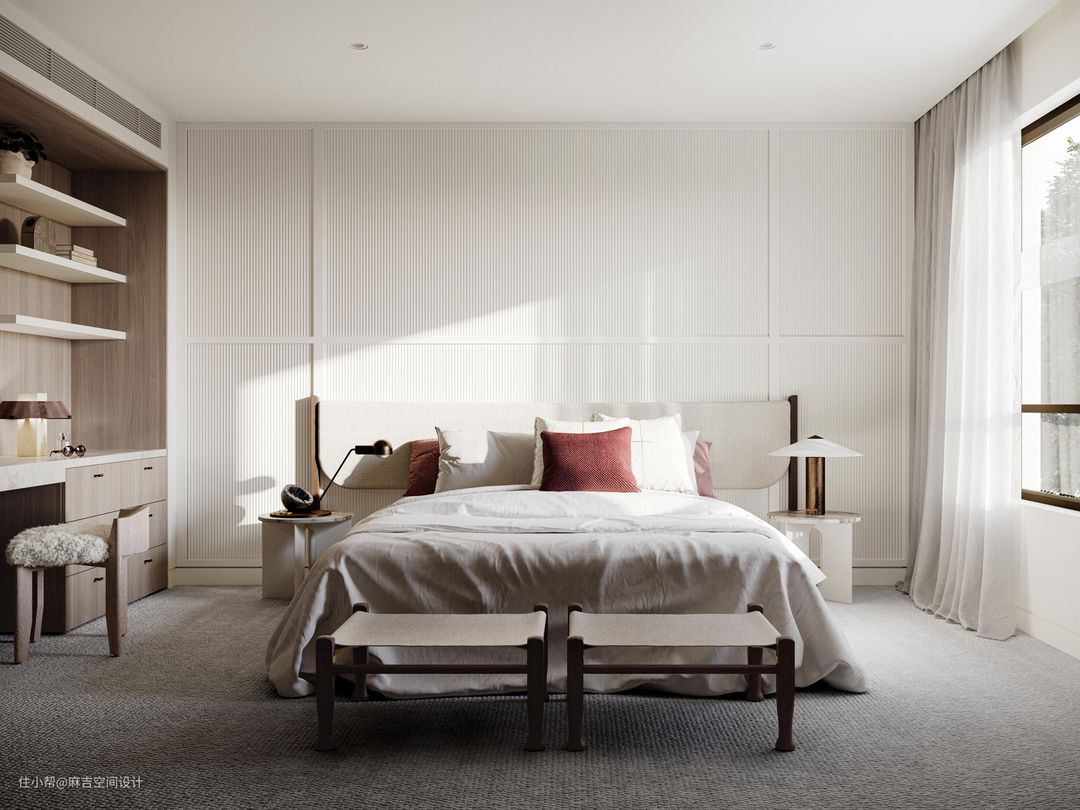 ①如果你的墙面有颜色的话,选择灰色或者米色窗帘是最保守的,基本上不会出现大的问题。