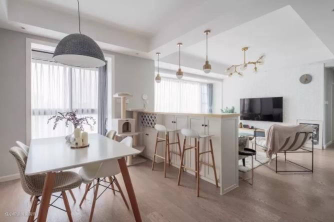 增加有情调的吧台,日常约上朋友来家里喝酒、闲聊很是惬意。同时,大大的提高了空间的利用率。