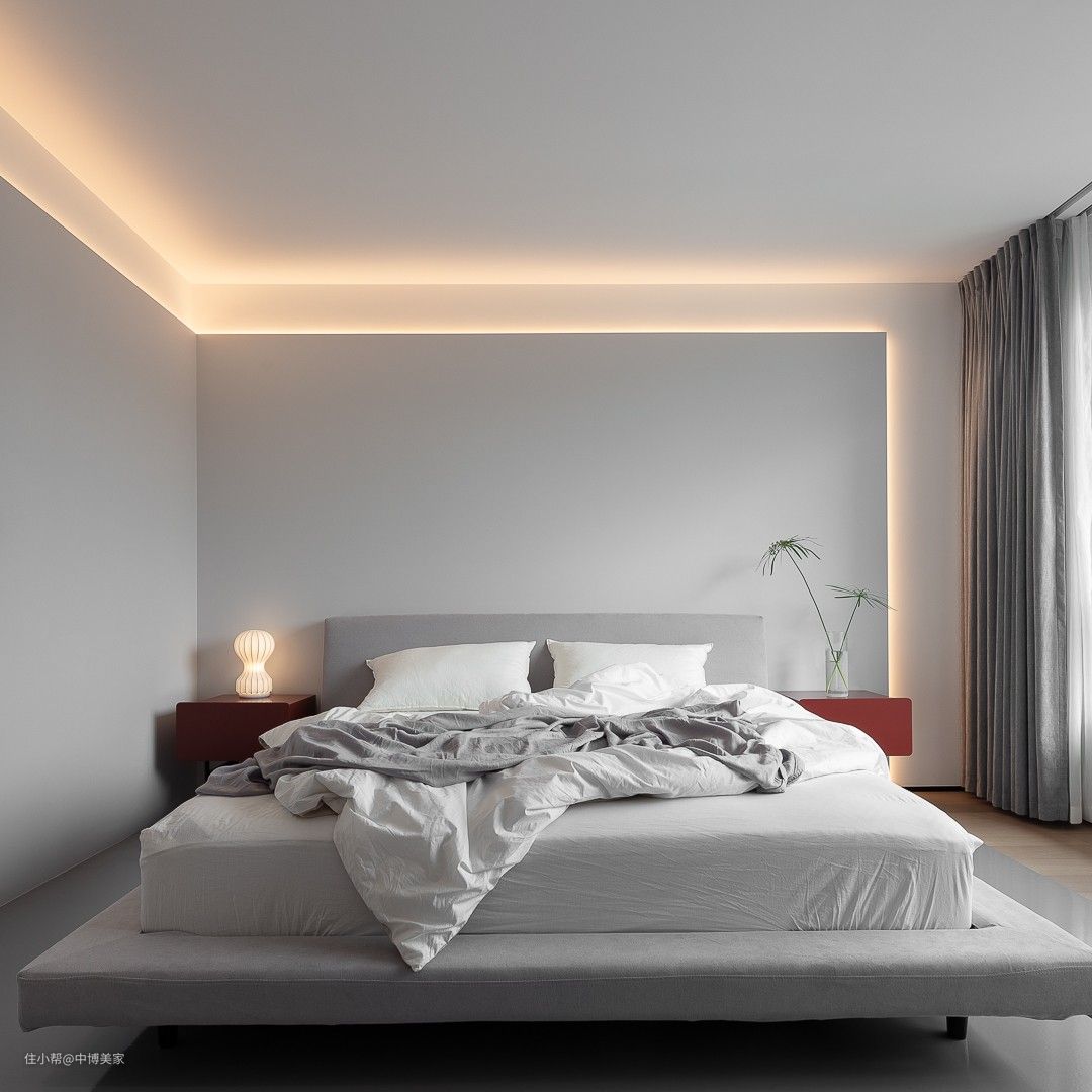 卧室是人在家中憩息的港湾,倦鸟归,整体营造的沉稳、安静、高端的风,使视觉以及精神感知方面得到双重享受。