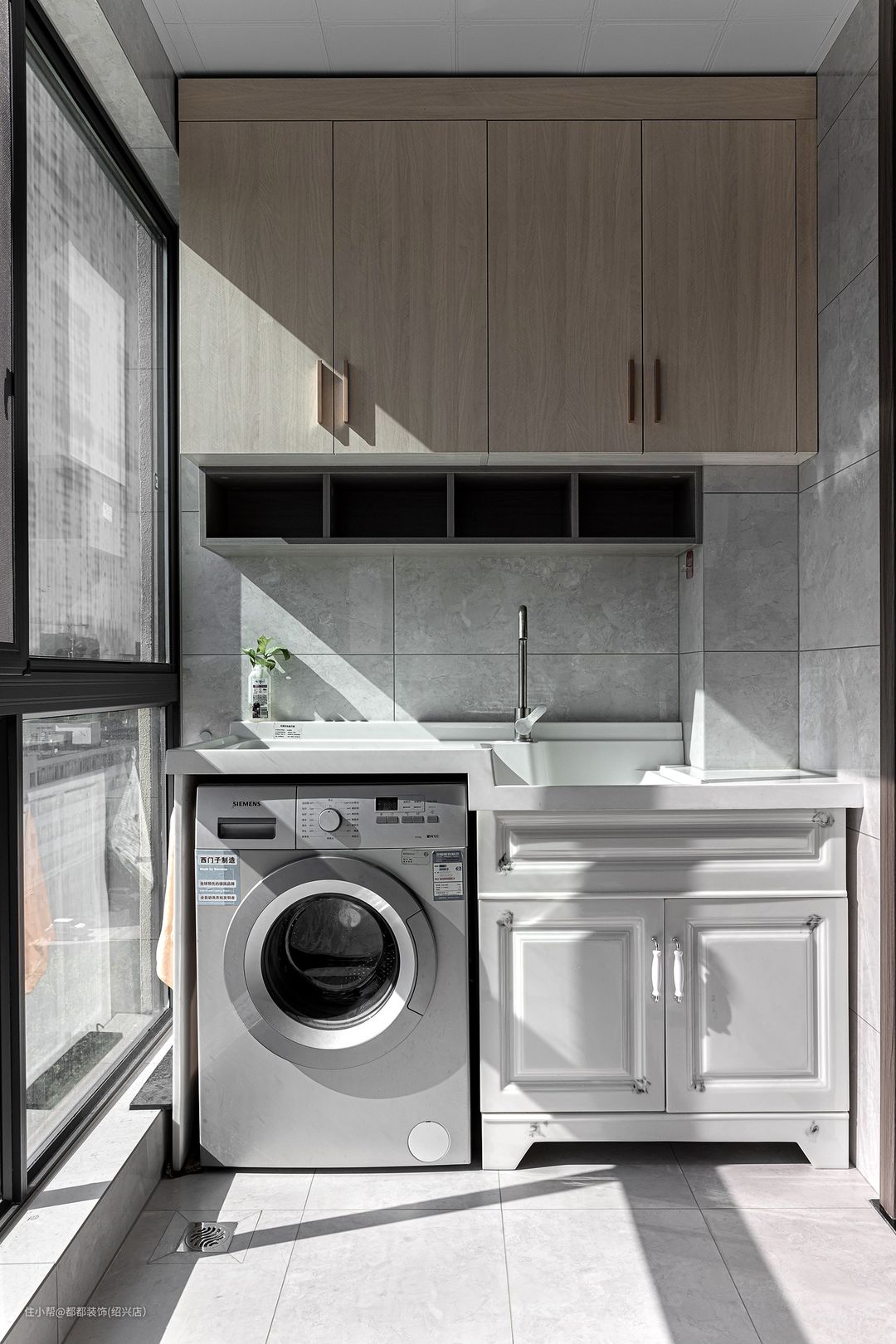 阳台采光充足,木制吊顶的设计简朴时尚,油然而生一种田园的惬意感,绿植的点缀让空间充满生机勃勃,墙面、地面、洗手台的完美组合,颜值想不高都不行。 #阳台施工经验大全