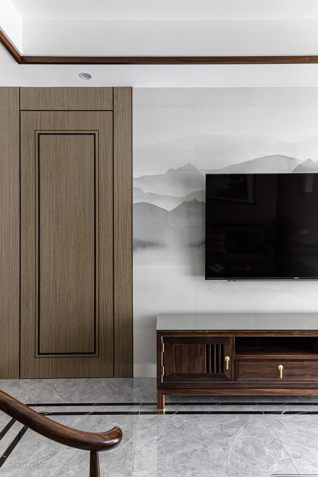雅致风韵的水墨挂画,山间云雾苍茫,山峰连绵起伏,呈现一派大气辽阔的美感,两侧的木饰面古朴大然,壁灯的运用让古色古香中更增加了一分灵动。#人类高质量环保生活