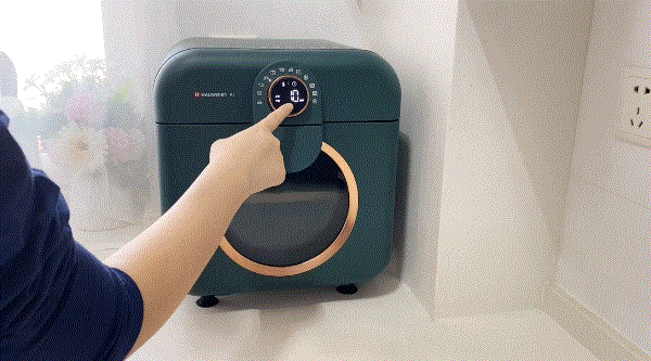 开启K7食光机的空气炸模式,100度30分钟。旋拧时会有“哆来咪发嗦拉西哆”的简单旋律响起哦,就像在弹钢琴一样悦耳,还蛮有趣哒~